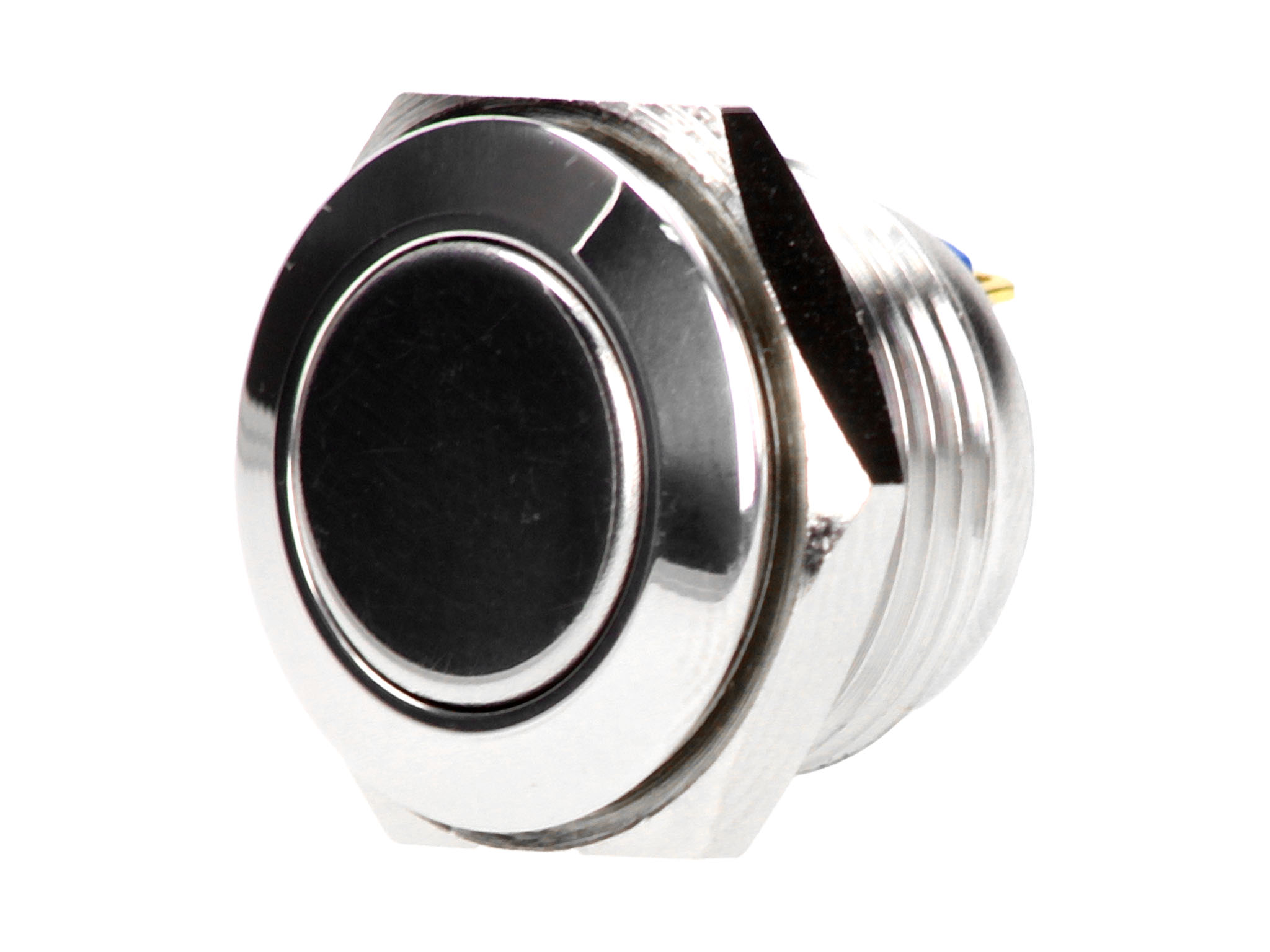 It is a robust, stainless steel switch designed to withstand harsh environmental conditions and mechanical impact. The component is suitable for use in direct current (DC) and alternating current (AC) circuits. Its mechanical durability exceeds 1,000,000 switching operations. The electrical durability depends on the loads applied to the switch contacts and amounts to at least 200,000 operations at 36 V DC and at least 50,000 operations at 220 V AC. The switch contacts feature the SPST-NO configuration, and their leads are suitable for wire soldering, which means that the product can be integrated into almost any circuit (provided the circuit meets the rated operating parameters of the switch). The component is designed to be panel-mounted using a screw tightened onto a threaded body. For the V16 model, the mounting hole diameter is 16 mm, and the maximum panel thickness is 6 mm.